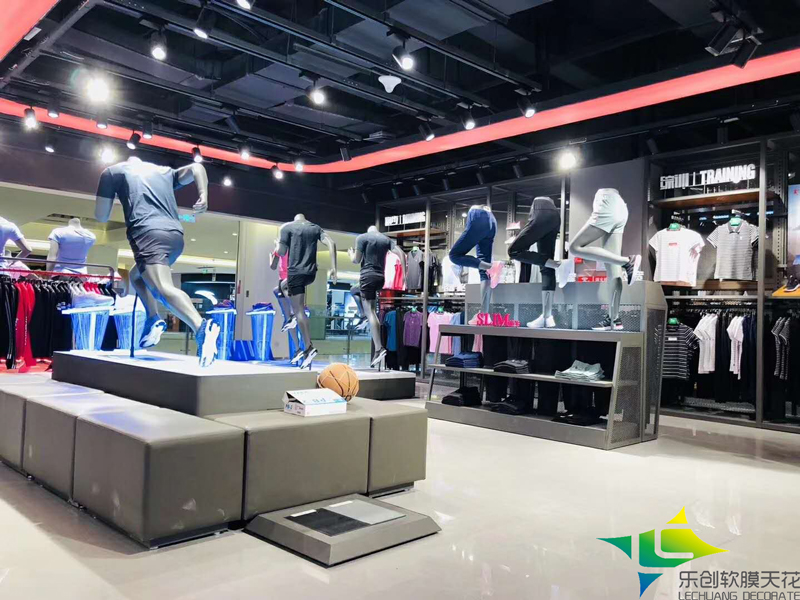 祝賀公司德州銀座商城三樓運(yùn)動(dòng)專賣軟膜天花燈帶完工,采用白色透光膜,結(jié)合異形跑道中國紅UV膜,契合運(yùn)動(dòng)專賣的主題,感謝客戶對我公司樂創(chuàng)品牌軟膜天花的認(rèn)可。 安裝效果如下圖: